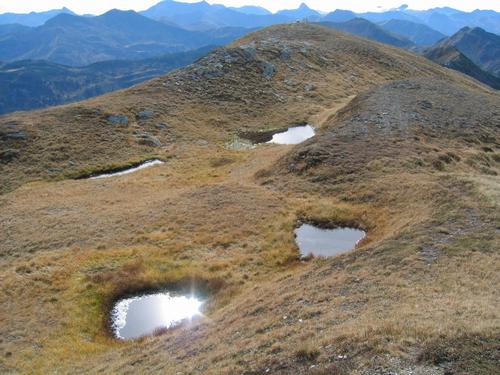 | Der offizielle Wanderweg vom Plannerknot zum Hochrettelstein verläuft nördlich des Grats - man kann aber auch direkt oben am mehr oder weniger breiten Grat wandern und findet einige schöne Lacken vor |