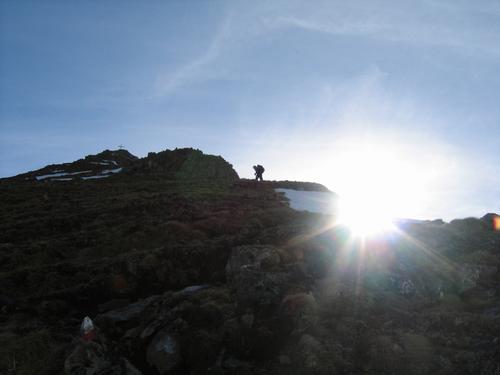 Heli strebt der Sonne und dem Gipfelkreuz entgegen