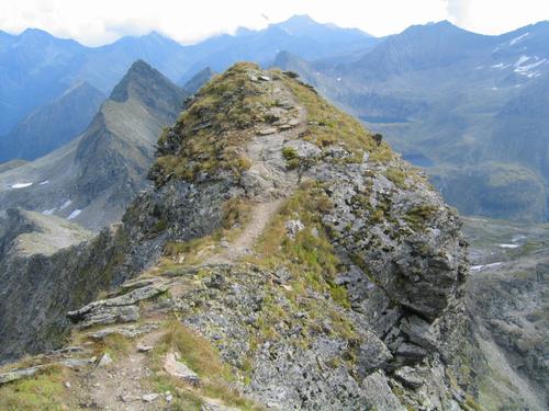 Eine der einfachen Stellen am Südgrat - ca. 1 Meter breit und bei beiden Seiten geht es Dutzende Höhenmeter senkrecht hinunter |