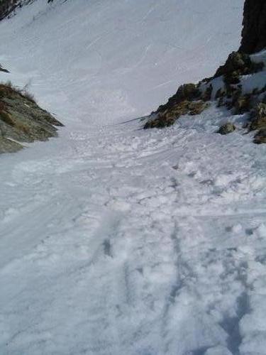Eine schmale Steilrinne mündet in die Langschneerinne |
