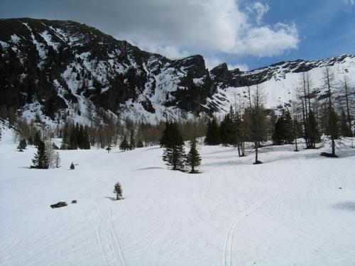 Sattental / Parkplatz - Perneralm - Forstweg zur Langschneerinne - Querung unter Stierkarkopf - Goldlacken - Trattenscharte - Wildlochscharte - Klettereinstieg Hochwildstelle/Südostgrat - Forstweg nach Langschneerinne - Schneetalrücken - Schneetalalm - Forstweg durch Kainachwald - Sattental / Parkplatz |