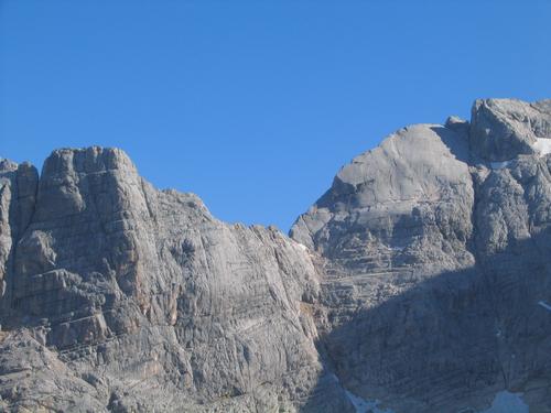 Glatte Felsen auch in der Wand auf der Südseite des Gosaugletschers
