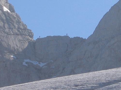 Zwei Wanderer in weiter Ferne in der Steiner-Scharte - mit dem (unscharfen) Digital-Zoom "herangezogen"
