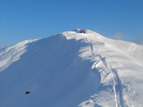 | Neben mir hat sich nur ein weiterer Wanderer die "Mühe" gemacht, die 5 Minuten über einen bereiteren Grat zum etwas tiefer gelegenen Gipfelkreuz abzusteigen. Hier blicke ich zurück zum höchsten Punkt. |