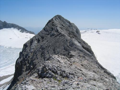 | Blick zurück zum Kleinen Gjaidstein, der auf unschwierigen Klettersteigen überschritten wird |