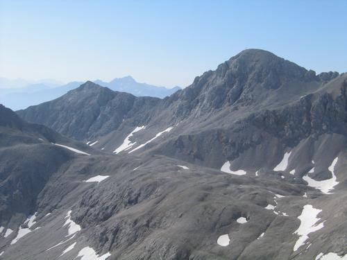 | Scheichenspitz (rechts) und Hohe Rams (links) - im Hintergrund lugt die Hochwildstelle aus den Niederen Tauern herüber |