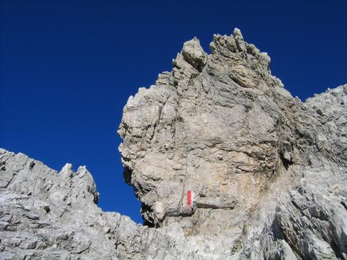| Auf den letzten 100 Höhenmetern gibt es leichte Kletterstellen - lediglich die letzten paar Meter sind durch Drahtseile gesichert. |