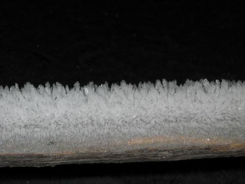 | In den kalten von der Sonne nicht mehr erreichten Gegenden des Riedingtales liegt zentimeterdicker Rauhreif, der im Mondlicht märchenhaft glitzert. |