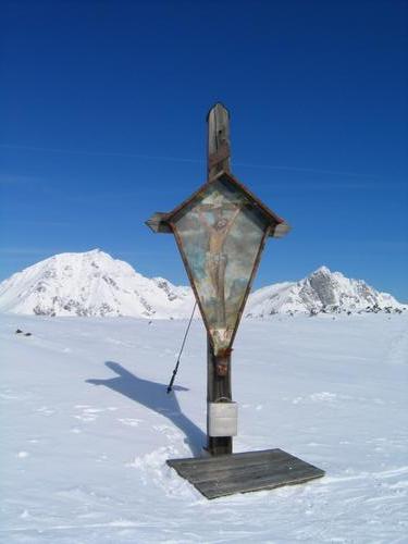 Das Gipfelkreuz - im Hintergrund der Große Pyhrgas und der Scheiblingstein