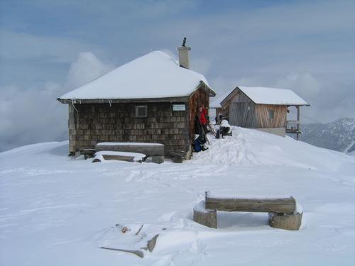 Bei der Pleschnitzzinken Hütte kam für 10 Minuten die wärmende Sonne durch die Woken