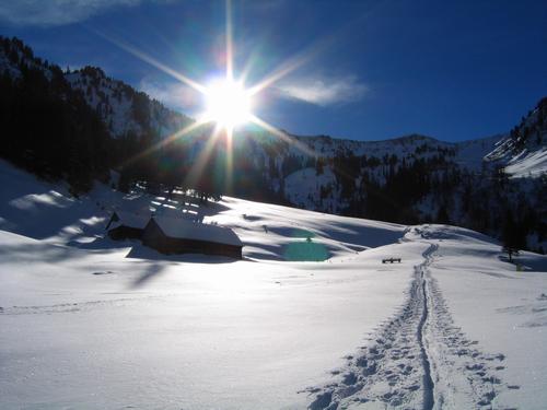 Bei der Hinteren Mörsbachalm - Schispuren und Schneeschuhspuren