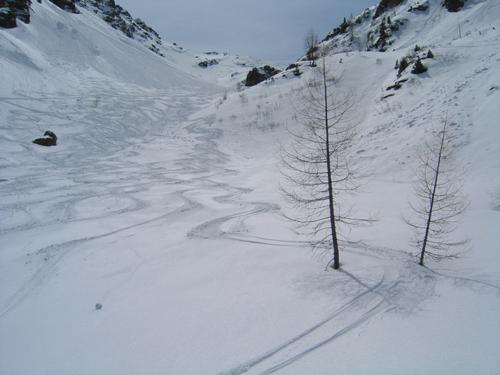 | Weiter oben nicht so einfache Schneeverhältnisse - aber hier im guten Firn bekam ich Lust auf einen weiteren Aufstieg |