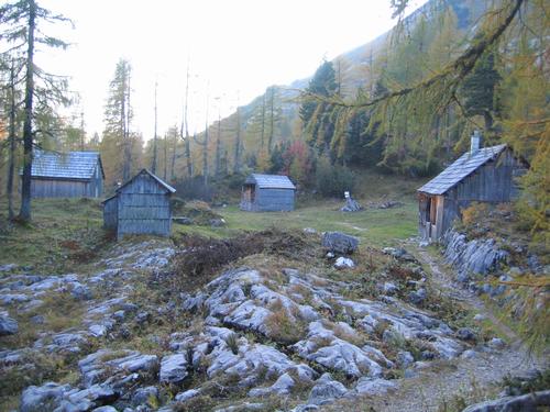 | Zurück bei den Hütten in der Elmgrube, die schon im Schatten liegt. Von hier habe ich das Kätzchen zur Pühringerhütte hinaufgetragen. |