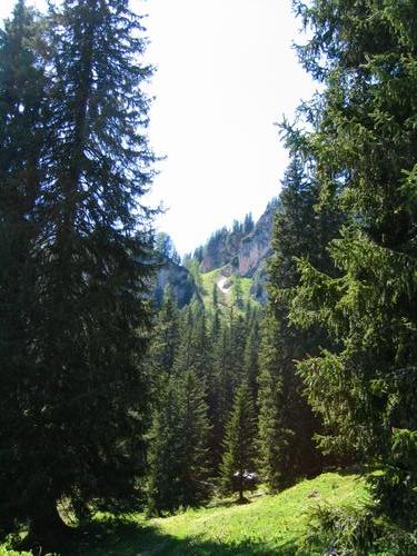 | Durch diese hohle Gasse muß er kommen - Blick zurück über den Steilhang, über den ich mein Rad schulterte |