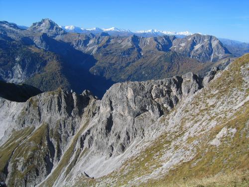 | Wunderbare Fernsicht. Im Hintergrund links der Faulkogel (siehe Tour vom 07.09.2005) - rechts die Ennskraxn |