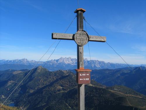 | Das Gipfelkreuz auf der Steinfeldspitze in 2.344 Meter Höhe |