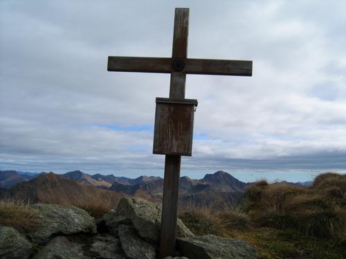 Am kleinen aber feinen Gipfelkreuz - das Gipfelkreuz wurde 1999 erneuert. Auch das Gipfelbuch stammt aus dieser Zeit und ist erst auf relativ wenigen Seiten beschrieben.
