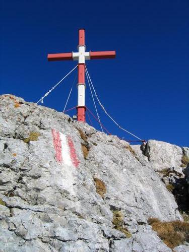 Beim Warscheneck-Gipfelkreuz. Die Gipfelbuch-Kassette ist leider leer.