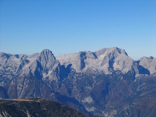 | Blick nach Nordwesten zu 2 großen Zielen für das nächste Jahr: Rechts der Gr. Priel - der höchste Gipfel im Toten Gebirge. Links mein persönlicher Favorit - die Spitzmauer. |
