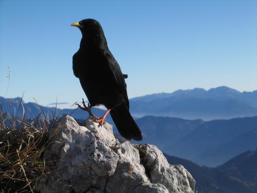 | Hungrige Bergdohlen gesellen sich zu mir, während ich am Toten Mann jausne. |