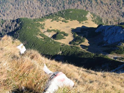 Tiefblick zu einer schönen Wiesenfläche südlich der Dümlerhütte