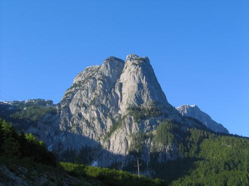 Blick vom Grundlsee zurück auf den mehr als 1.000 Höhenmeter aufragenden Backenstein