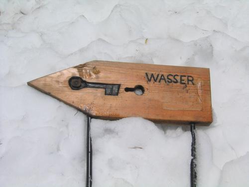 Eine Tafel weist auf eine etliche Meter über dem Boden liegende Höhlen-Quelle hin ...