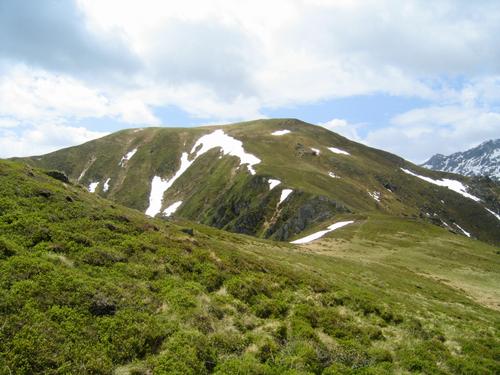 Nur mäßig steil geht man am Nordrücken gipfelwärts.