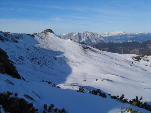 | Blick aus der Mößnascharte zum Lämmertörlkopf, auf den wir am 15.01.2006 eine sehr schöne Pulverschnee-Tour genießen konnten. Auch hier sind einige Schispuren erkennbar. |