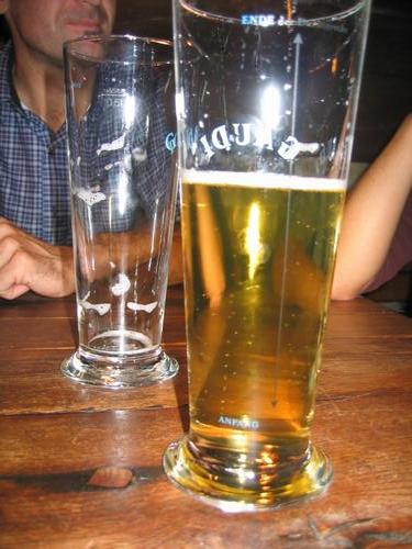 | Der AlpenYeti (rechtes Glas) hat zwar nach schönen Touren auch einen gesunden "Zug". Aber nichts im Vergleich zur "Leererin" des linken Glases (besonders aufmerksamen Lesern wird die Einschränkung auf Personen weiblichen Geschlechts wahrscheinlich nicht entgangen sein). |