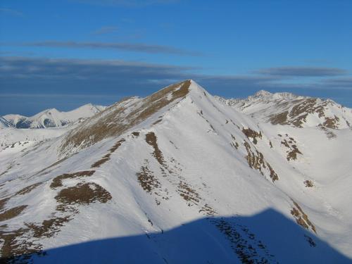 | Blick vom Schrattnerkogel zum meinem letzten Ziel, dem Seitnerzinken. Die Schatten werden bereits unübersehbar länger. |