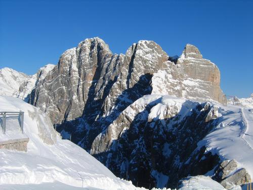 | Schon oft gesehen - aber jedes Mal wieder ein unwiderstehlicher Augenschmaus. Der Blick vom Hunerkogel zu den höchsten Gipfeln im Dachsteingebirge. |