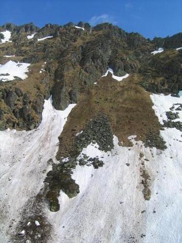 Überall aus den umliegenden Steilhängen sind in den letzten Tagen und Wochen Grundlawinen abgegangen.