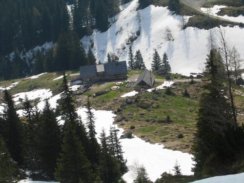 Knapp oberhalb der Kaltenbachalm. Hier muß man schon vorausschauend fahren, um die letzten zusammenhängenden Schneeflecken nutzen zu können. |