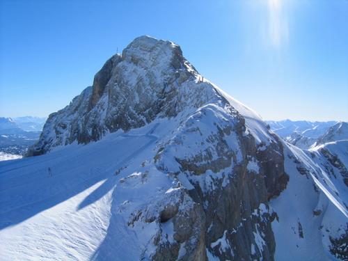 Trotz der Höhe von knapp 2.700 Meter und des noch frühen Vormittags dürfen wir uns schon über frühlingshafte Temperaturen freuen - Blick zum Koppenkarstein.