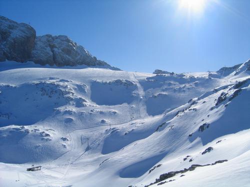 Die Schipisten am Schladminger Gletscher kommen ins Blickfeld.