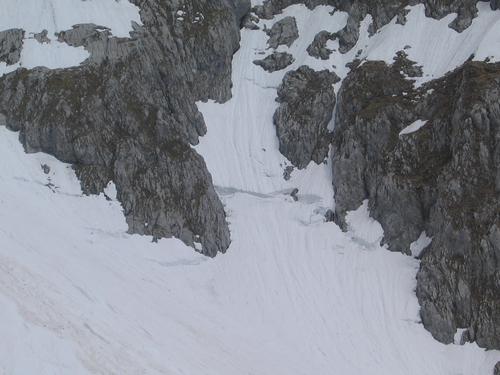 In den vielen steilen Rinnen warten noch immer zahlreiche Rutsche, bis ihre Zeit gekommen ist.