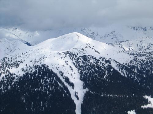 Blick zum Schüttkogel, der gerade im "Scheinwerferlicht" steht. Mein Schneeschuh-Ziel am 18.02.2006.