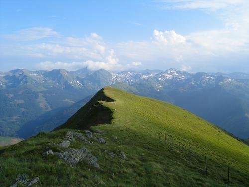 | Vom Schreinl eher bergab als noch bergauf zum letzten Gipfel (dem 13. Zweitausender heute) - der sonnenbeschienene Kollerriegel |