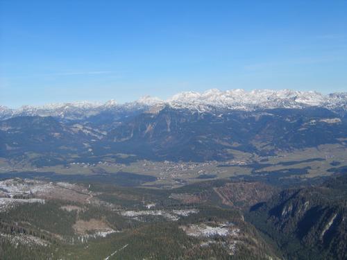Blick nach Norden: Das Tote Gebirge über Bad Mitterndorf im steirischen Salzkammergut