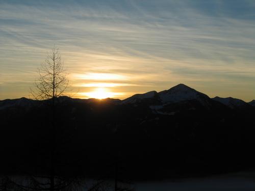 Die Sonne wird sich bald östlich (links) des Gumpenecks über die Wölzer Tauern erheben ...