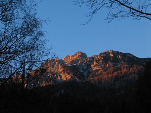 Zurück beim Ausgangspunkt. Wir kommen gerade rechtzeitig herunter, um die letzten Sonnenstrahlen des Tages auf der Kammspitze zu bewundern.