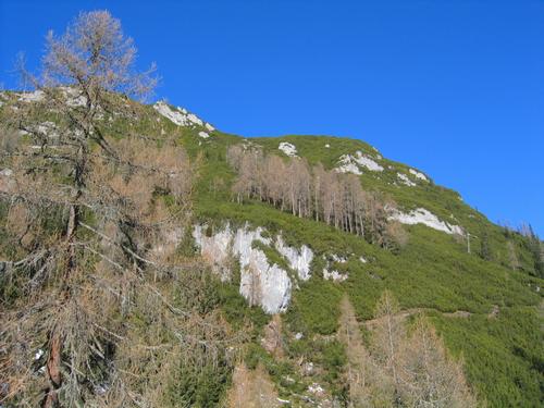 Gar nicht winterlich, sondern in kräftigem Grün präsentiert sich die Südseite des Winterstein.