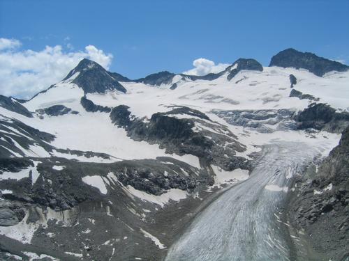 ... auf den Großen Geiger (links) und den ihn umgebenden Gletschern ...