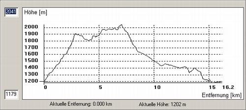 | Das Höhenprofil der heutigen Rundtour: Aufstieg zum Kochofen - Gratwanderung in leichtem Auf- und Ab zum höchsten Punkt der Tour - dem Dromeisspitz. Abstieg über Schladmingeralm und Stiegleralm - zurück zum Ausgangspunkt. |