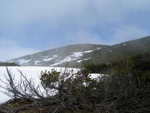 | Als die Wolkendecke wieder einmal kurz aufreißt und den Blick auf diesen Hügel freigibt, beschließen wir, ihm einen Besuch abzustatten, ohne zu ahnen, welch "fesselnde" Latschenfelder uns dort erwarten werden. |