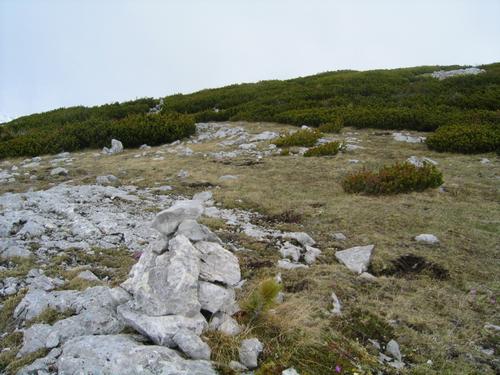 | ... recht angenehm über Schneefelder und unangenehm über lästige Lastschenfelder zum Plateau des Hochangernstockes hinauf. Von hier leiten zahlreiche Steinmandln weglos aber unschwierig bis zum Gipfelkreuz des Angerkogels hinüber ... |