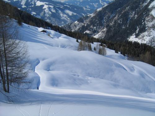 Unberührte, jungfräuliche, breite, leicht hügelige Hänge ganz für mich alleine