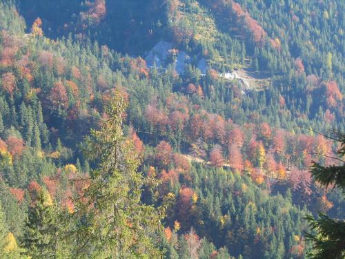 | Zum Schluß führt der Weg durch sehr steilen Wald hinunter zum Jagdhaus Gradenbach, wo wir dann entlang der Forststraße (heute am Sonntag ständig von schottertransportierenden LKW´s befahren ?) wieder zurück zum Ausgangspunkt nahe der Kneippanlage Weißenbach gelangen. |