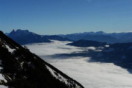 Blick nach Osten: Nebel - Im Hintergrund die Ennstaler Alpen